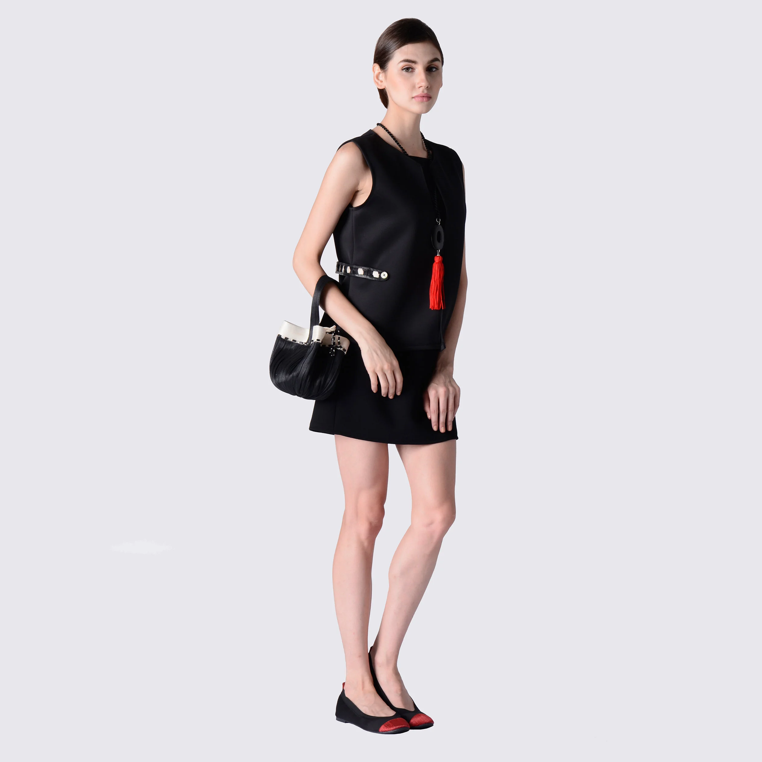 Bared with silken stream of sleek black Banaca pleats, Ginza pleated bag fashion a mellifluous custom charm of appeal. Bequeathed with a glossy black single strap, a zigzag cross design on the side, and candid plane beadwork, Ginza bag gives you the pure atmosphere of glamour and elegance.